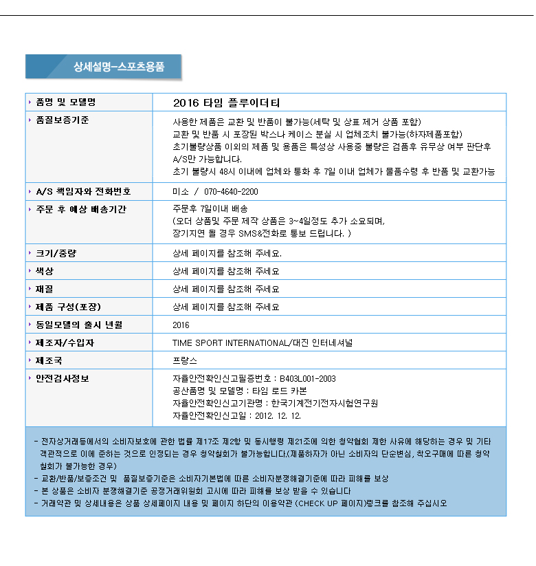 제조자 TIME SOPORT INTERNATIONAL / 대진 인터내셔널