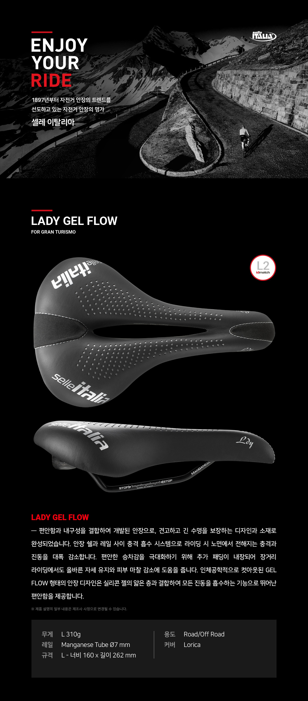 [뉴 셀레이탈리아 LADY Gel Flow L2 로드 MTB 자전거 전립선 안장]