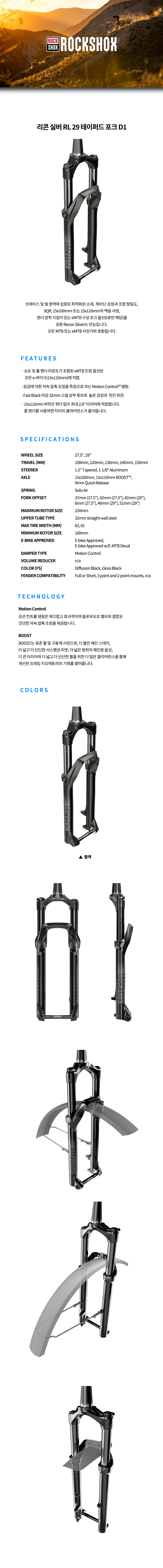> 락샥 리콘 실버 RL 테이퍼드 포크 MTB eMTB 자전거 29인치 서스펜션