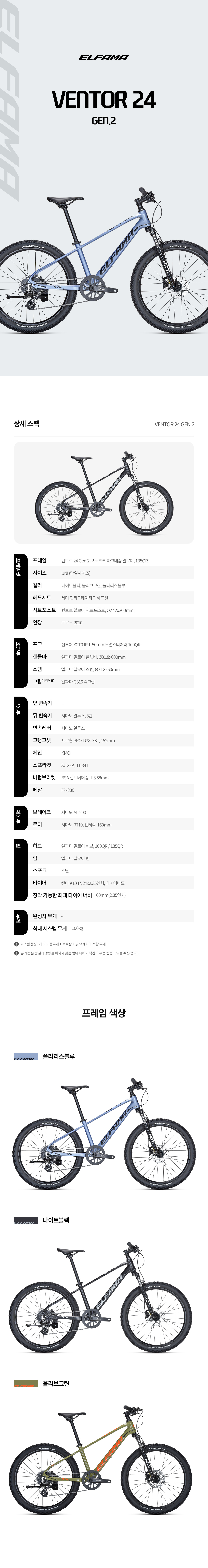 엘파마 벤토르 v24 Gen.2 8단 MTB 주니어 자전거