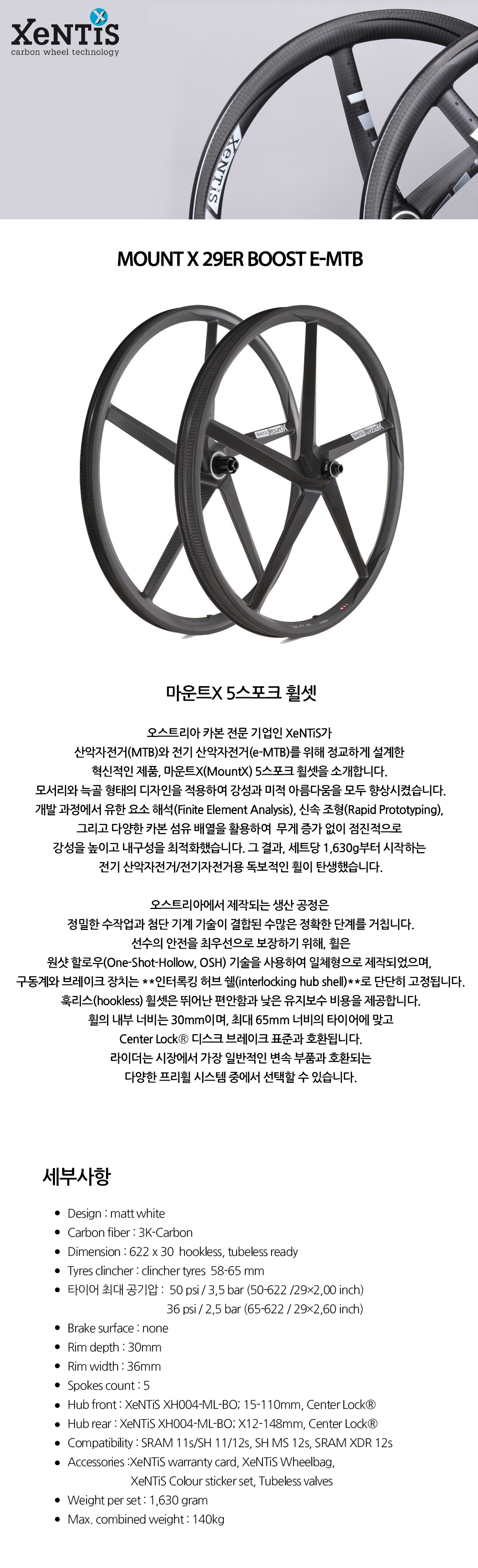 [젠티스 E-MTB 전기 자전거 자전거 휠셋 마운트 엑스 29ER 부스트]