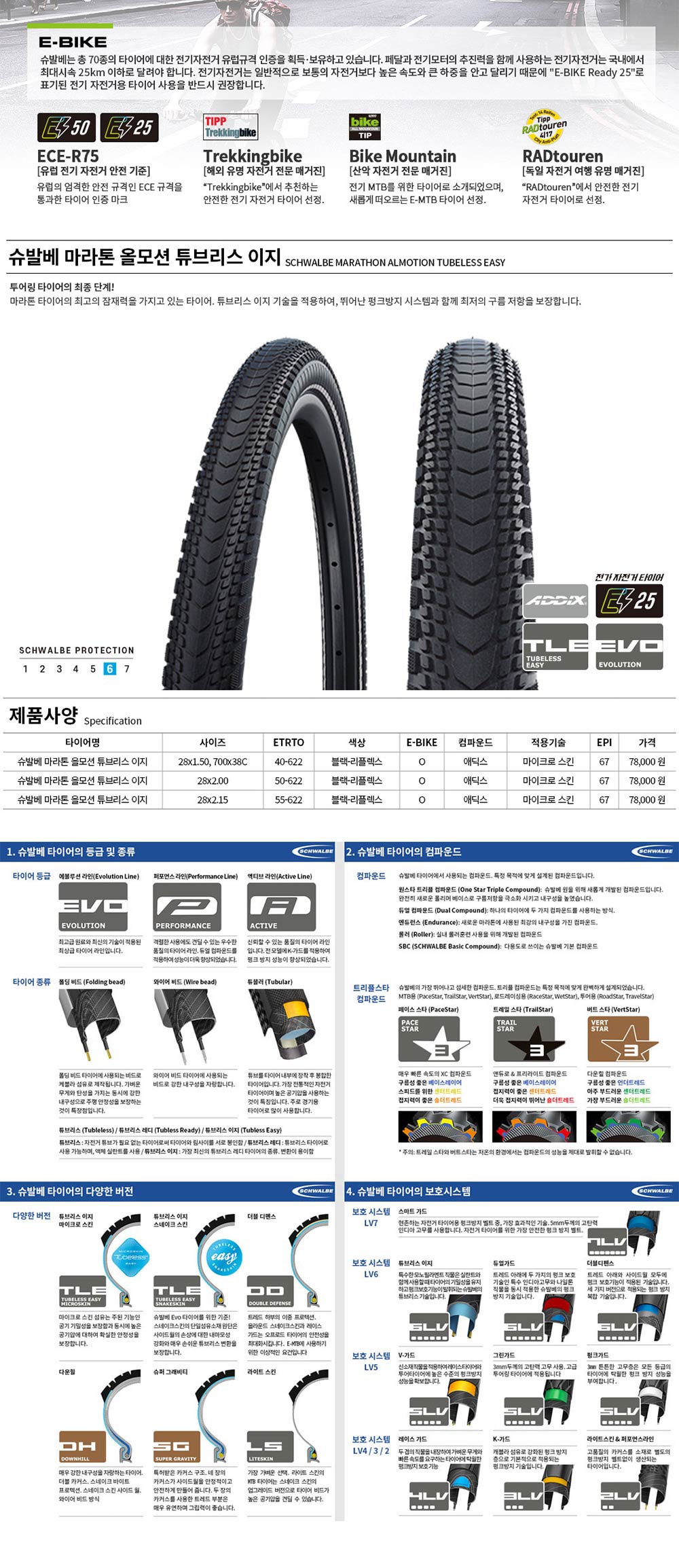 > 슈발베 올모션 TLE 튜블리스 이지 폴딩 전기 자전거 타이어