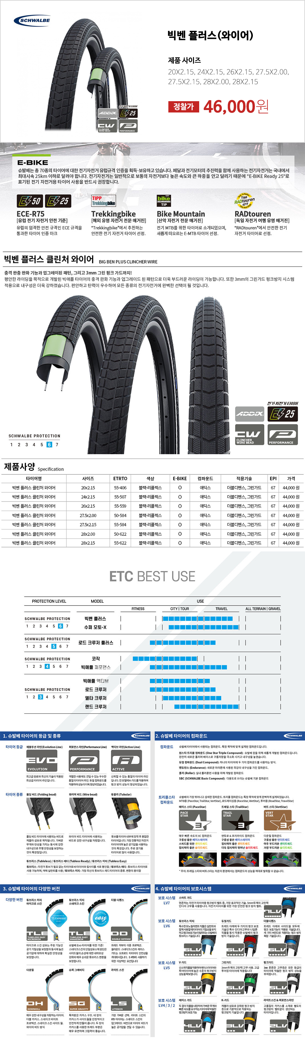 슈발베 빅벤 플러스 클린처 와이어 전기 자전거 타이어