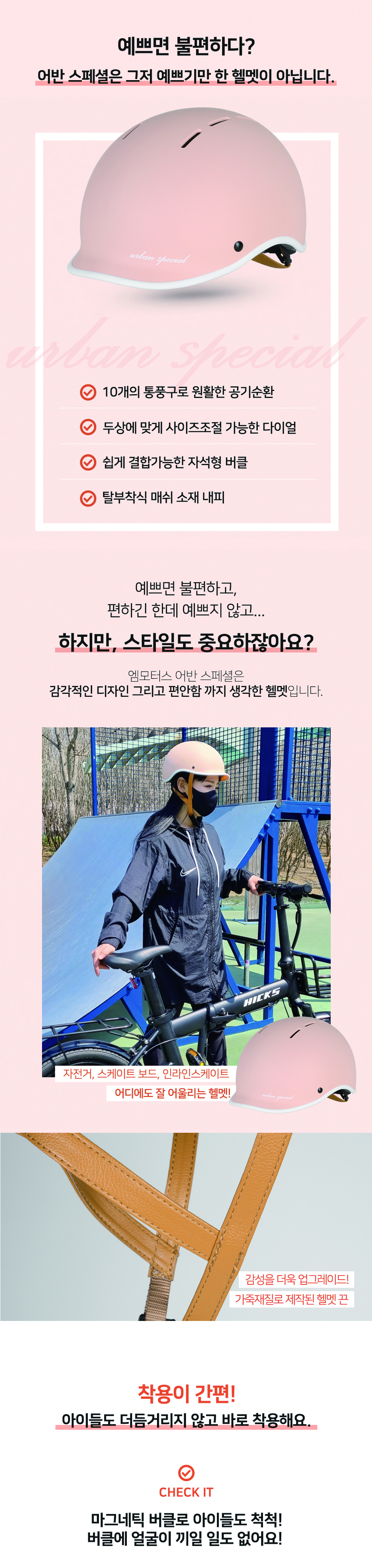 > 엠모터스 어반 스페셜 쁘띠핑크 자전거 인라인 스케이트 헬멧