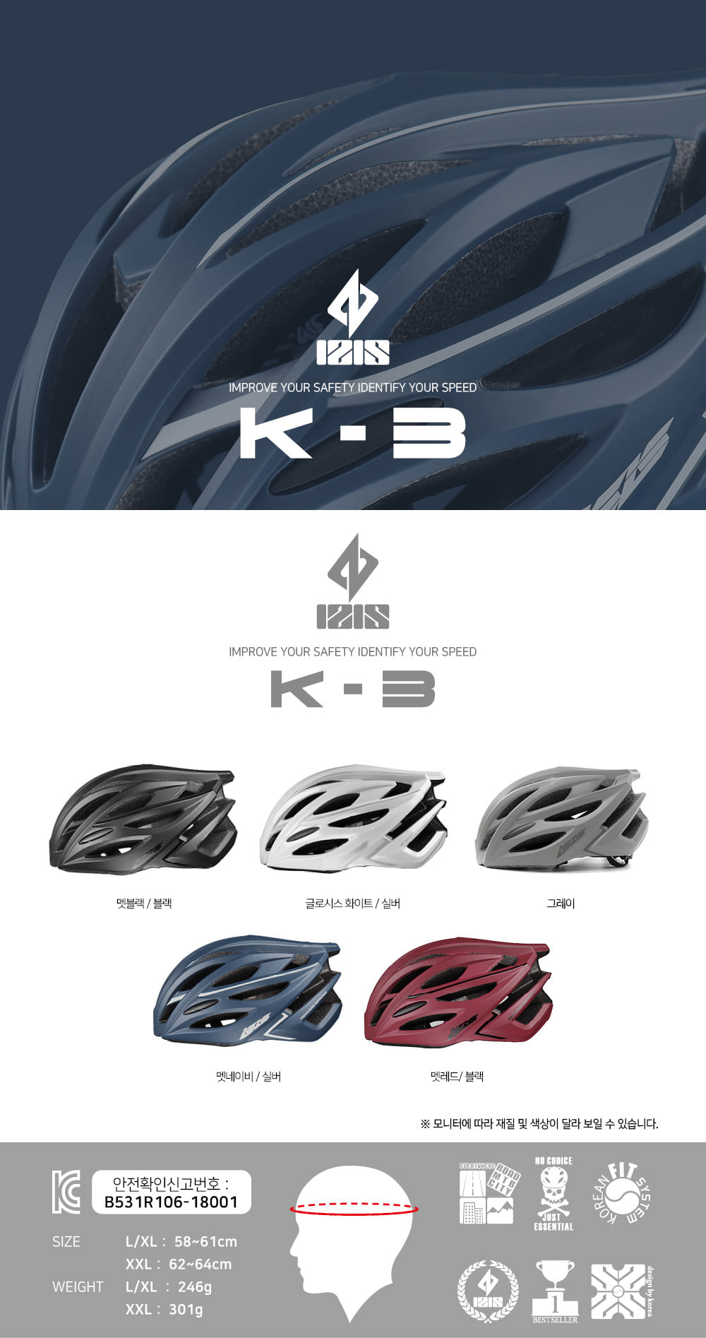 > 아이시스 K3 인몰드 자전거 헬멧 옆짱구 대두형 헬멧