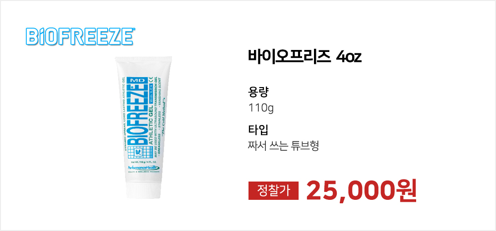 > 바이오프리즈 엠디 4oz 짜서 바르는 스포츠겔 튜브형 쿨링겔 마사지겔