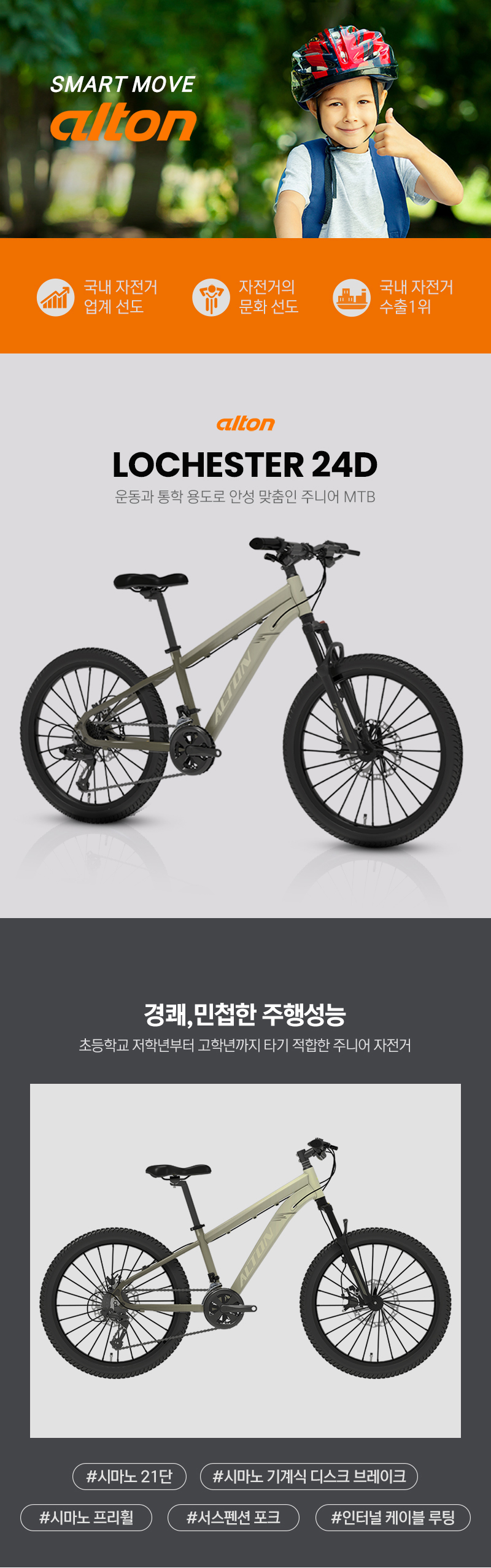 > 2025 알톤 로체스터 24D 21단 초등학생 주니어 MTB 자전거