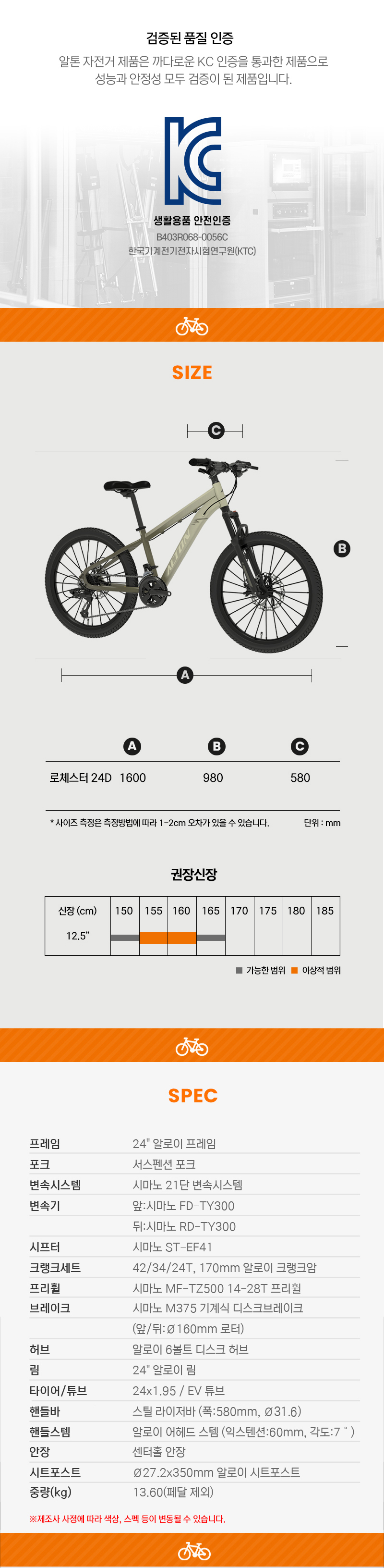 [2025 알톤 로체스터 24D 21단 초등학생 주니어 MTB 자전거]