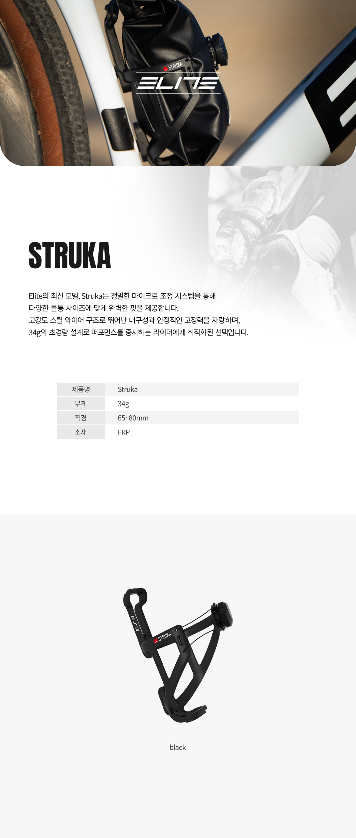 > 엘리트 스트루카 34g 초경량 물통 거치대 자전거 고강도 스틸 와이어 물병 케이지
