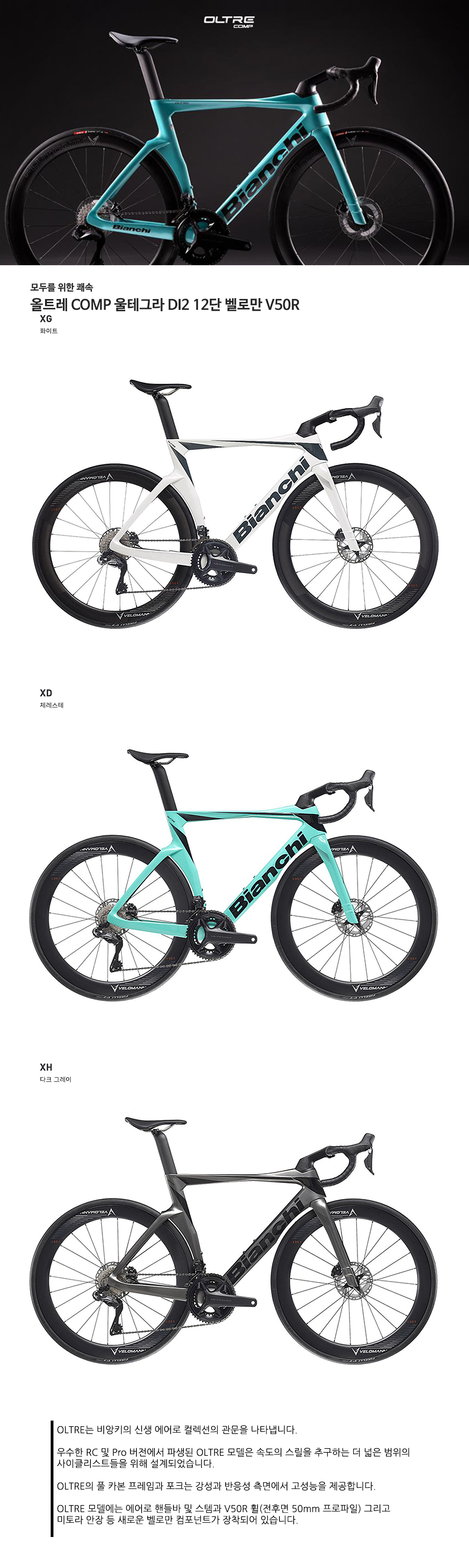 > 비앙키 올트레 COMP 울테그라 DI2 24단 벨로만 V50R 50X34T 크랭크셋 로드 자전거