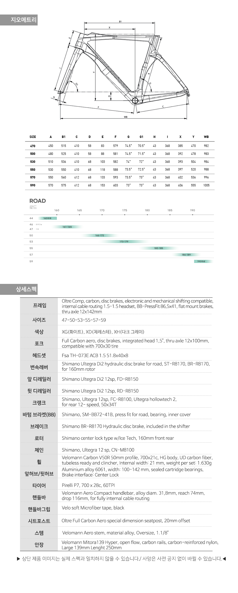 비앙키 올트레 COMP 울테그라 DI2 24단 벨로만 V50R 50X34T 크랭크셋 로드 자전거
