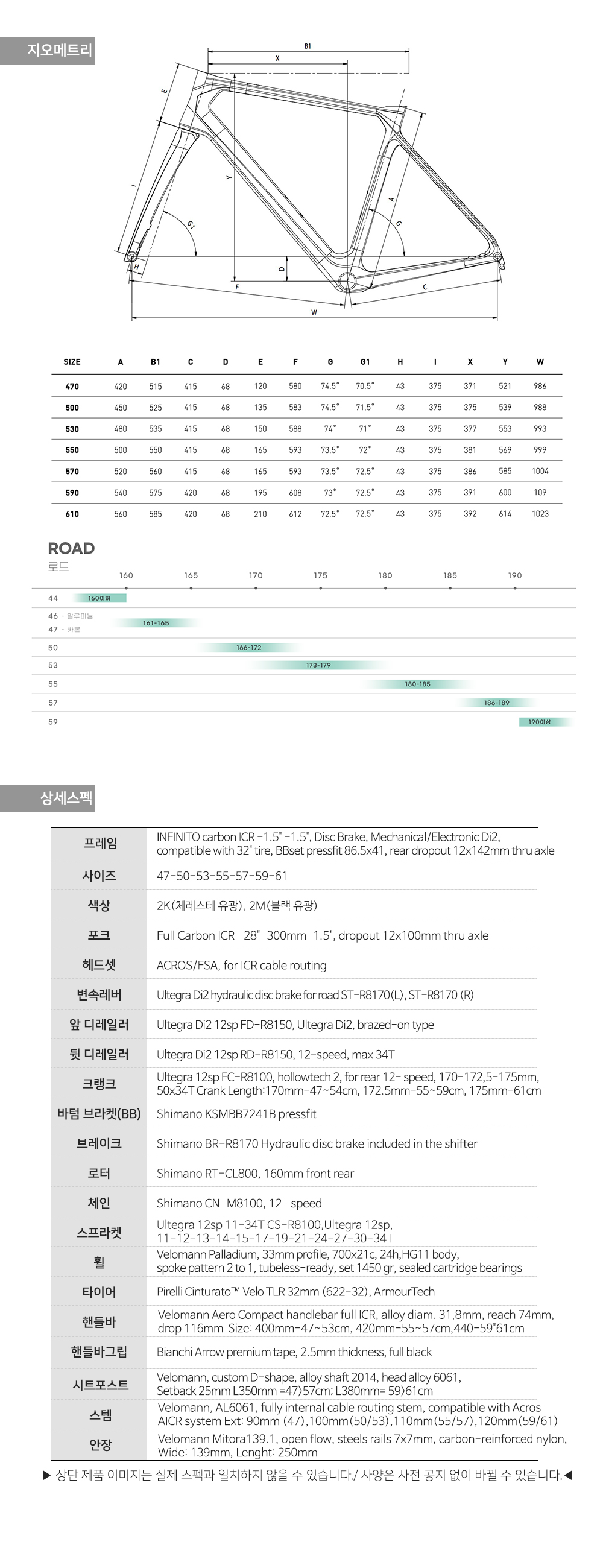 > 비앙키 인피니토 울테그라 Di2 24단 엔듀어런스 지오메트리 로드 자전거