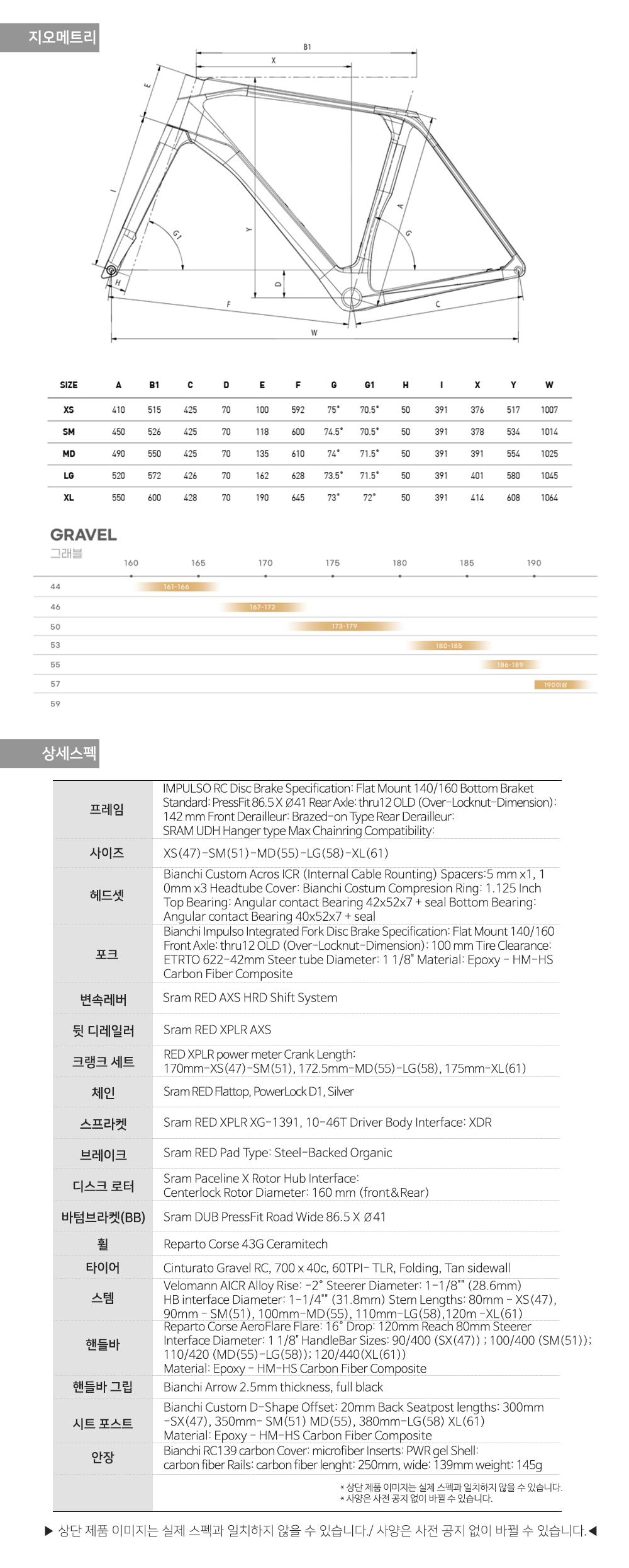 > 비앙키 임풀소 RC 스램 RED XPLR 13단 그래블 자전거