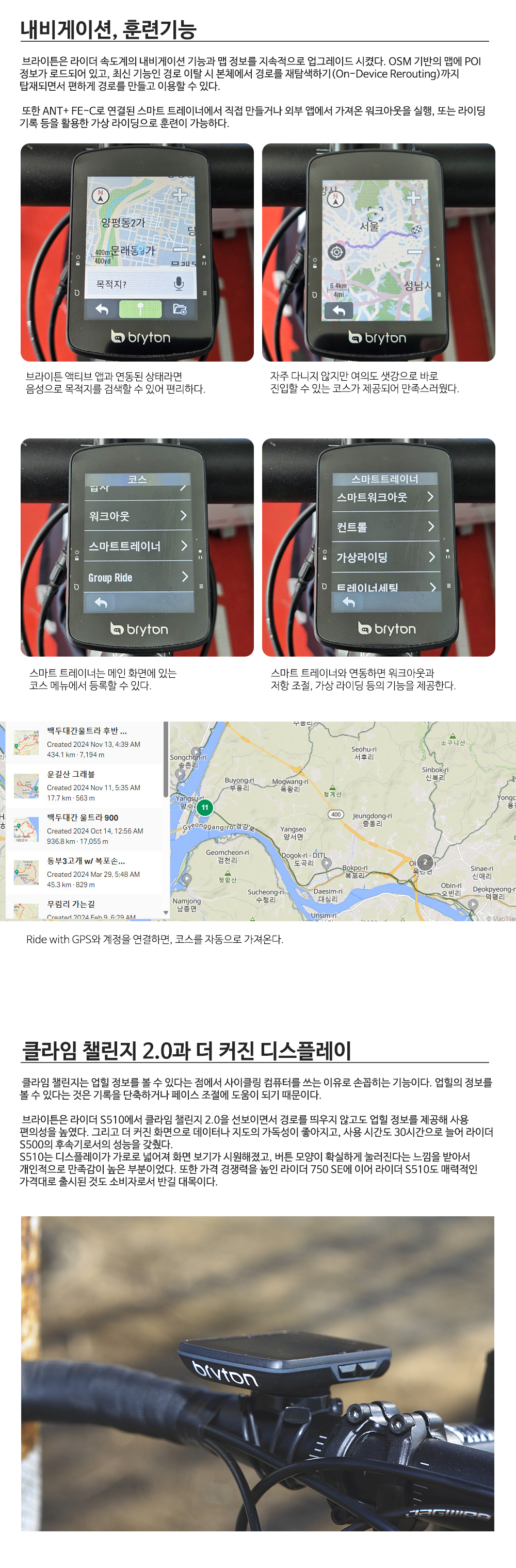 > 브라이튼 라이더 S510 자전거 GPS 네이게이션 터치 한글 속도계