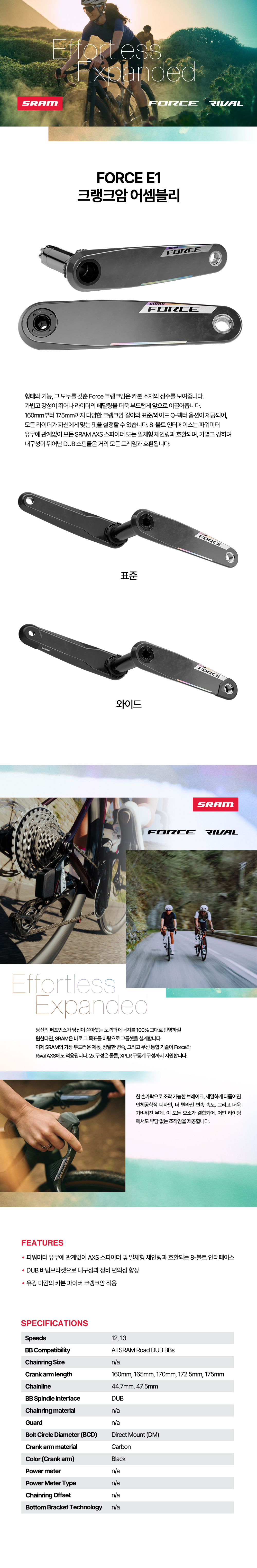 > 스램 체인링 스파이더 비비미포함 포스 E1 크랭크암 어셈블리