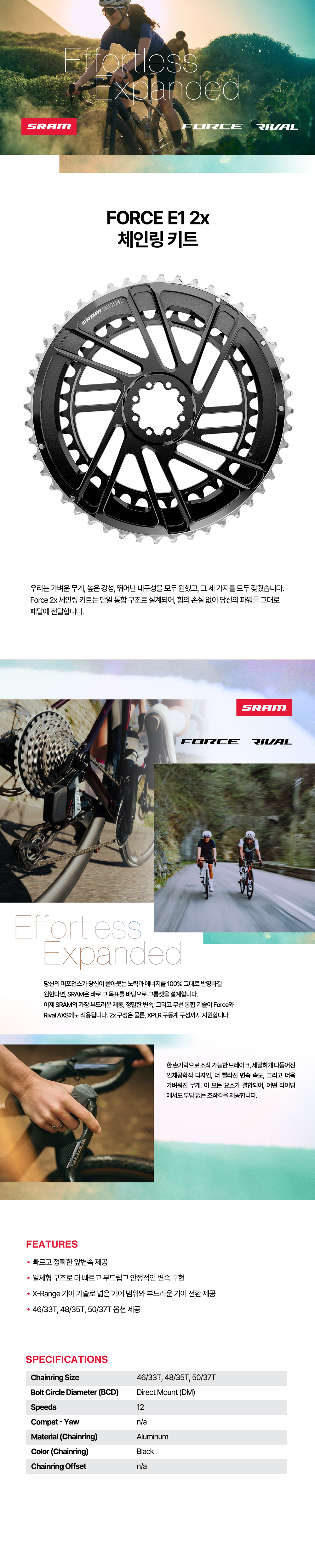 [스램 12단 로드 자전거 크랭크 체인링 포스 E1 2X 체인링 키트]