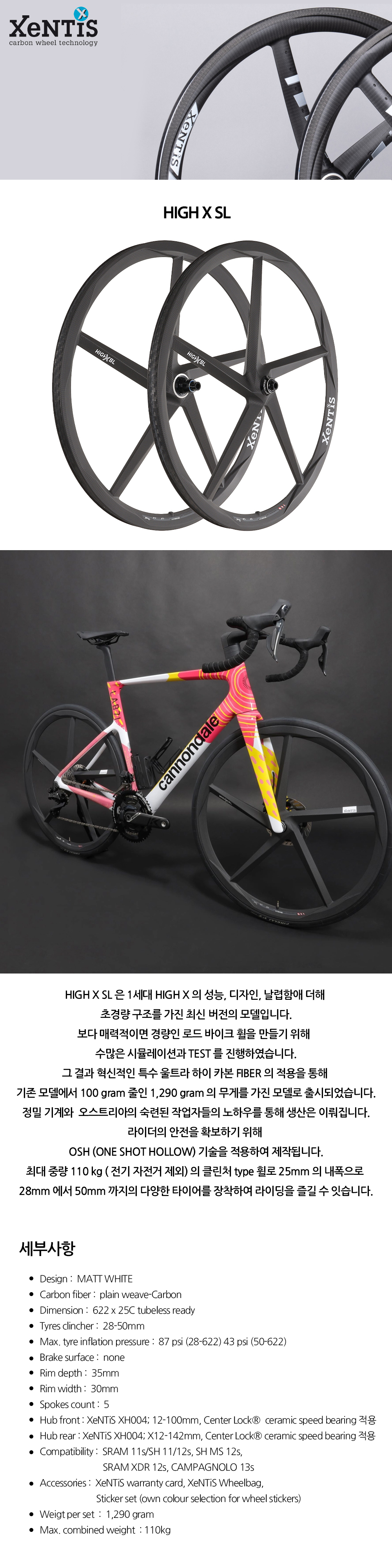 > 젠티스 로드 자전거 디스크 브레이크 휠셋 하이 엑스 SL