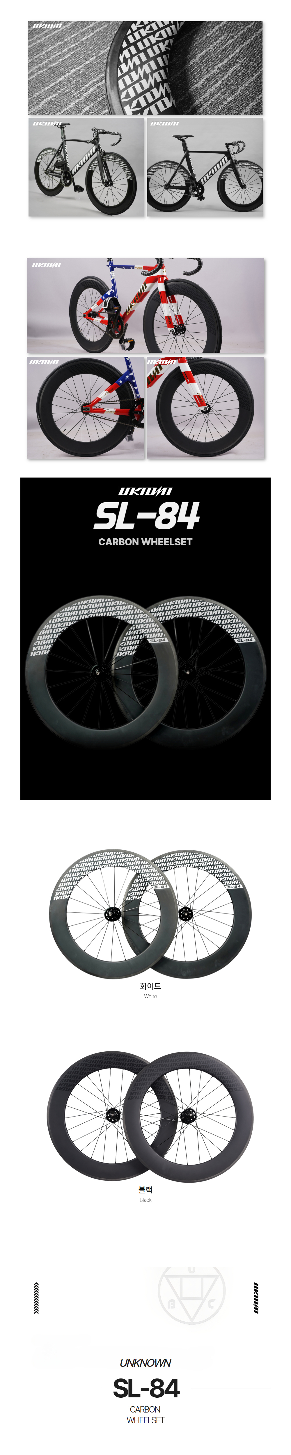 [언노운 픽시 자전거 싱글 기어 SL-84 카본 휠셋 고정 기어 휠 세트]