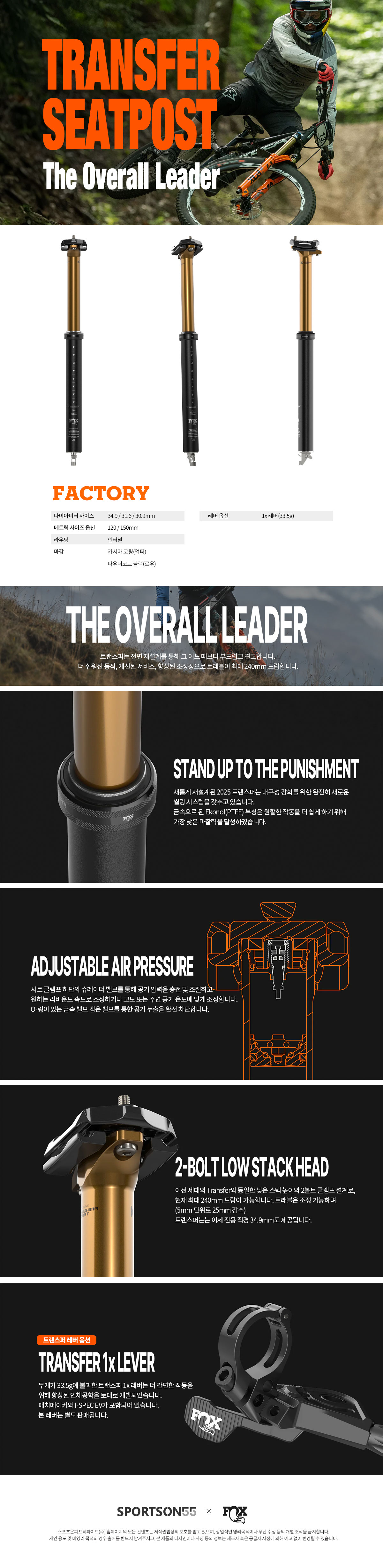 [폭스 트랜스퍼 F-S K 시트포스트 자전거 안장 부품]