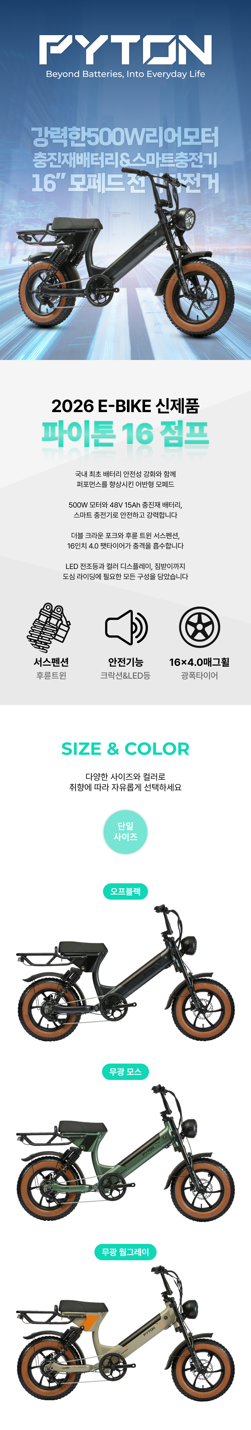 [2026 알톤 파이톤 16 점프 48V 15Ah 500W PAS 스로틀 전기자전거]